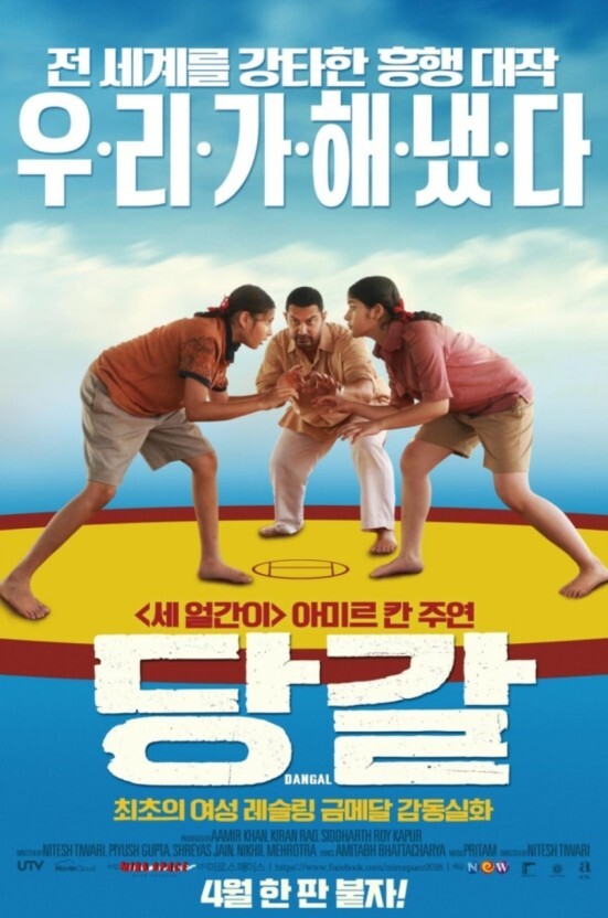 흔한 스포츠 감동 실화지만, 그것들과는 다르다는 것을 여실히 보여주었습니다. 인도 특유의 신나는 음악과 자매의 마음을 대변하는 가사에 웃음 짓다가, 점점 변해가는 사람들의 인식에 혼자 통쾌하다가, 레슬링 경기는 긴장감까지 쥐어주며 기술이 들어갈 때마다 일희일비하게 한다. 3시간이라는 긴 시간이 무색할 만큼 지루함이라곤 하나도 없었습니다.
