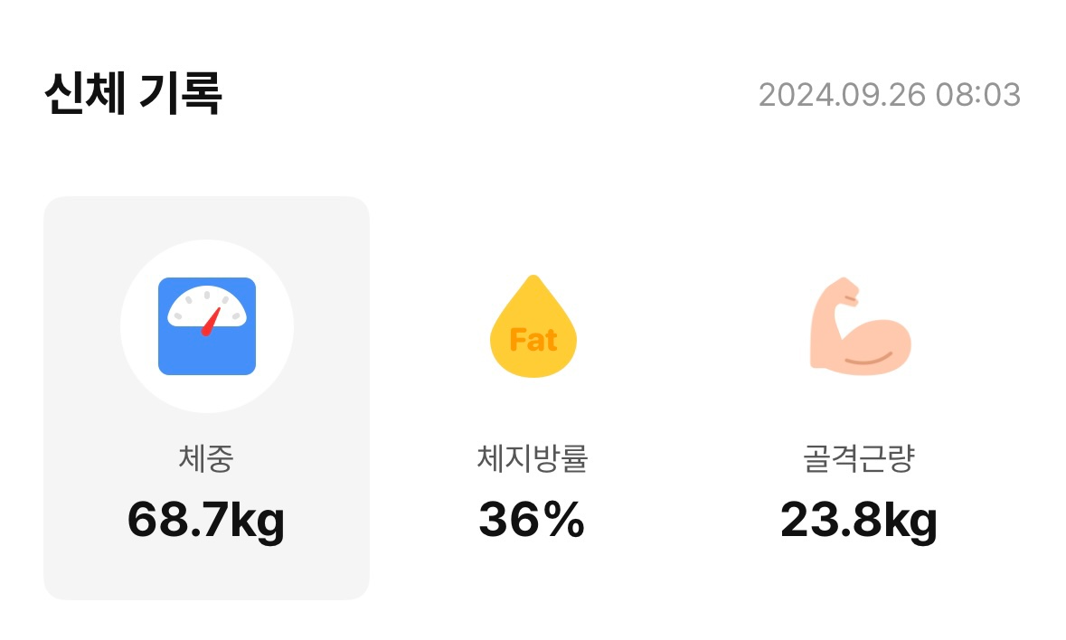 오늘도 체중이 1kg이 더 빠졌어요! 다이어트 초기엔 이런 빠른 변화가 있을 수 있다지만, 그래도 매일매일 숫자가 내려가는 걸 보면 정말 기분 좋아요. 이대로 계속 쭉 빠지면 좋겠는데! 😆 다만, 초반에는 근손실이 있을 수 밖에 없대요!