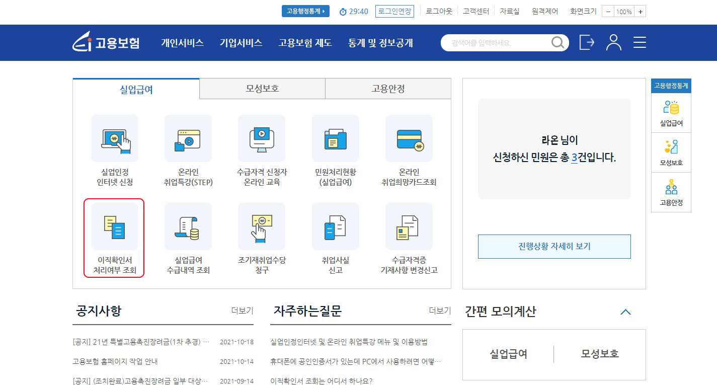 ** 최근 고용보험 홈페이지가 리뉴얼되면서 메인화면에 나와있어요😉