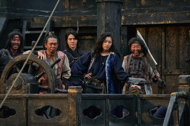 그만큼 강렬한 색채와 거대한 스케일을 자랑하는 외관적 비주얼에 이어, 각각의 캐릭터들이 육지와 바다를 오가며 보여주는 액션은 영화 <해적: 도깨비 깃발>이 가지고 있는 장점입니다. 자신들을 위협하는 이들로부터 물러서지 않는 무치와 해랑이 각각 보여주는 액션 또한 묘미입니다.